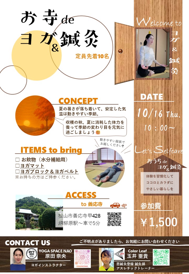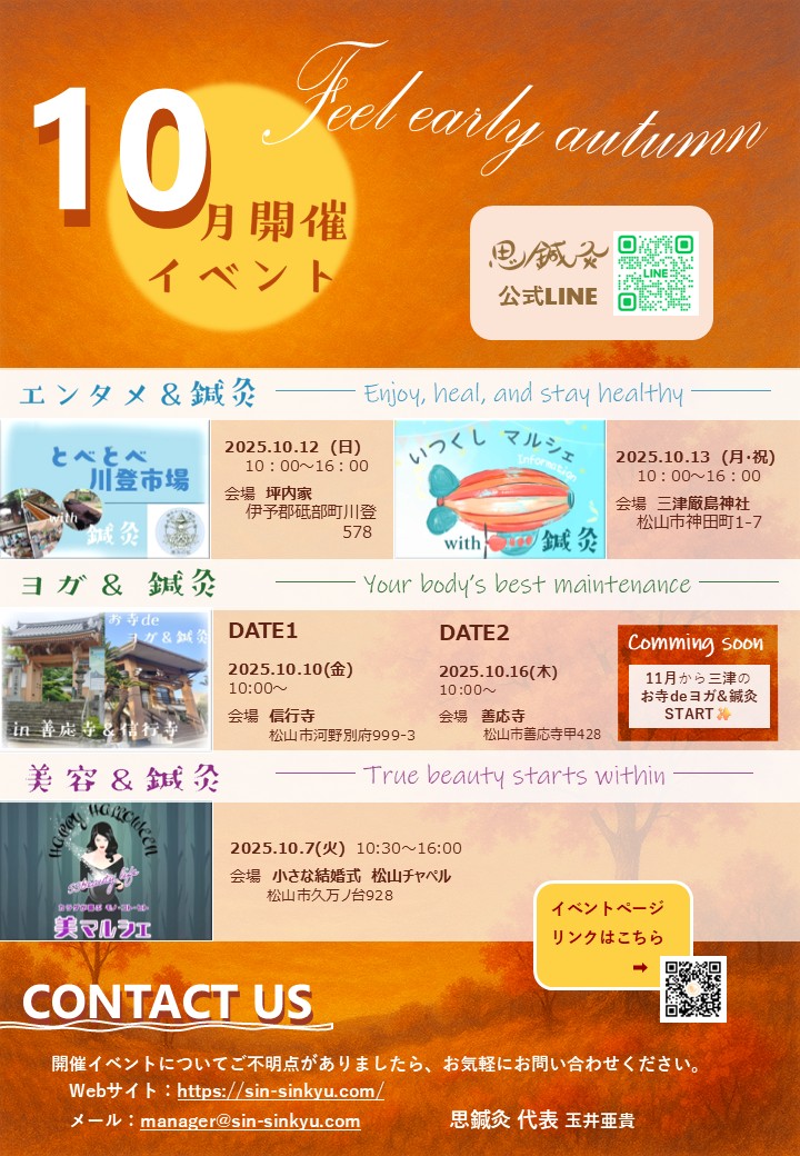 美容➕鍼灸・かふぇ➕鍼灸・ヨガ➕鍼灸など、今月も思鍼灸メンバー参加イベントをご紹介します😊