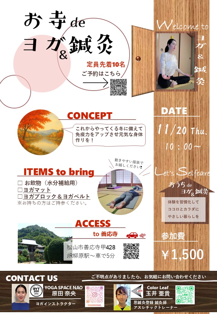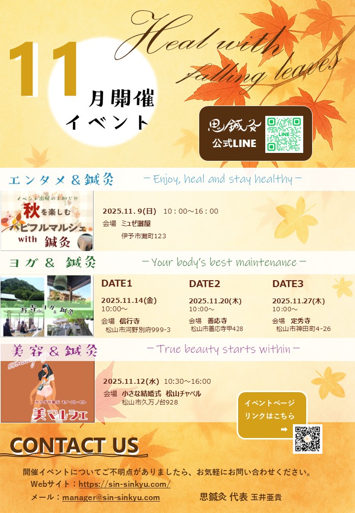 美容➕鍼灸・かふぇ➕鍼灸・ヨガ➕鍼灸など、今月も思鍼灸メンバー参加イベントをご紹介します😊